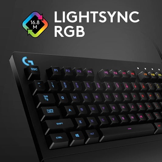 Logitech G G213 Prodigy Gaming Keyboard, LIGHTSYNC RGB Backlit Keys, Spill-Resistant, Customizable Keys, Dedicated Multi-Media Keys, QWERTY UK Layout - Black