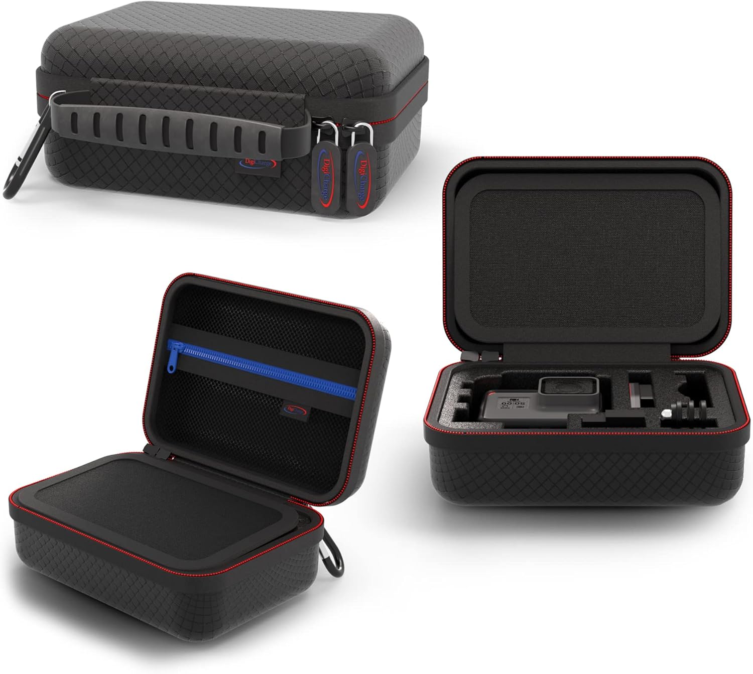Digicharge Carry Travel Case, Compatible with Action Cameras Gopro Hero10 Max Hero9 Hero8 Hero 10 9 8 7 Akaso Apexcam Dragon Touch Vemont Cam, Black, S, Backpack,compatible