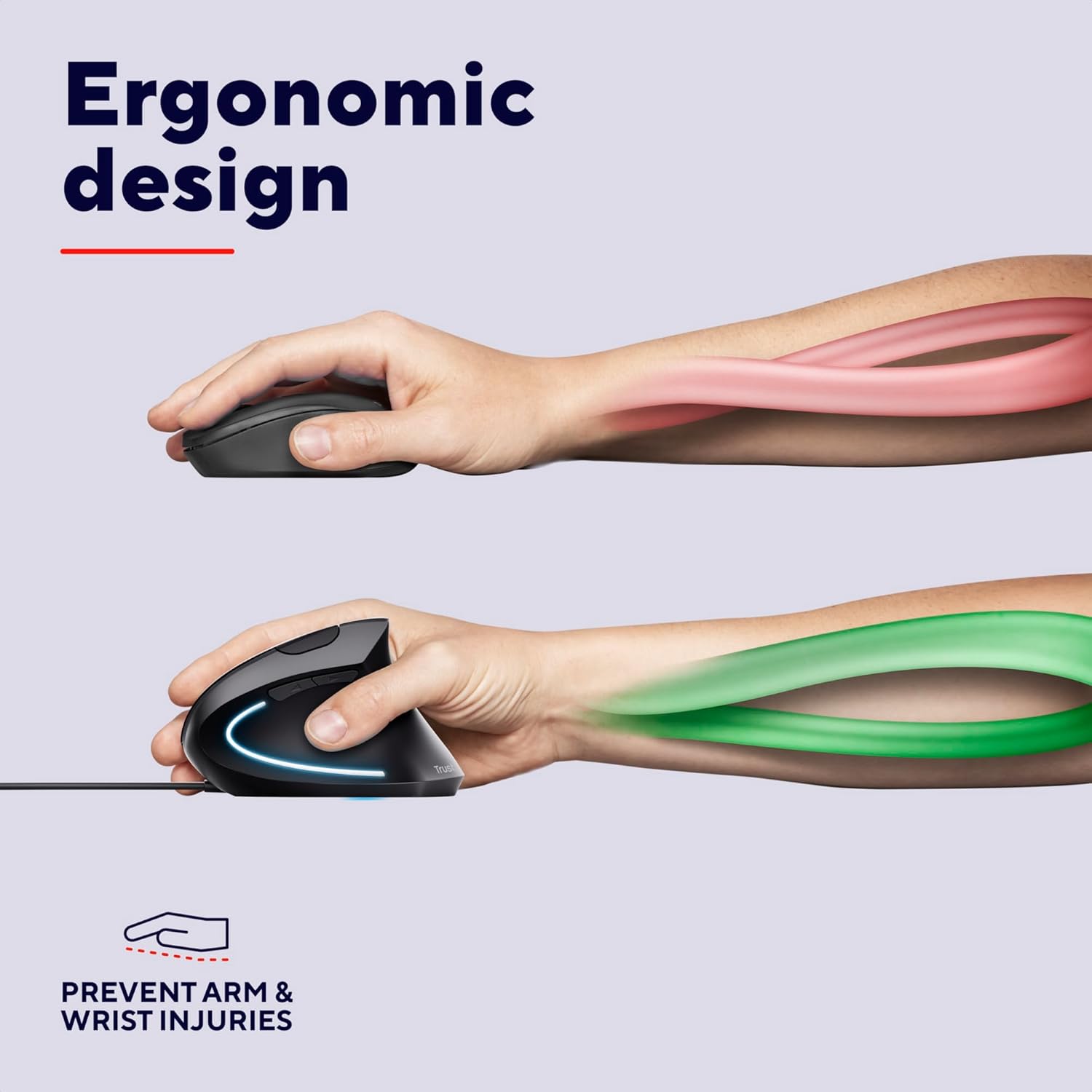 • GOODBYE STRAIN – This ergonomic mouse is the vertical solution to strain and pain. Its ergonomic shape brings your arm and wrist into a natural 60° position to work effortlessly