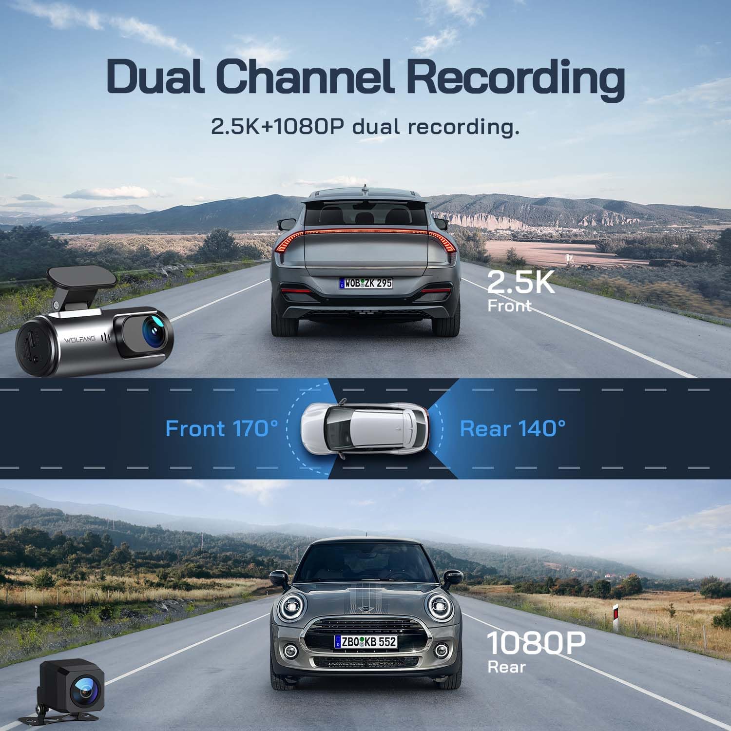 WOLFANG Dash Cam Car Front Rear 4K WiFi Dash Cam with 32GB SD Card, Ultra Night Vision, 170° Wide Angle