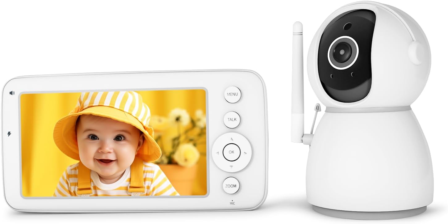 💖5-inch ultra-clear screen & 1080P HD camera】: The 1080P HD camera and 5-inch ultra-clear monitor display offer unmatched clarity in video monitoring. With its 2x zoom capability, the display allows parents to quickly and clearly examine the baby's condition, assuring the baby's safety and comfort and providing parents with a warm and safe parenting experience.